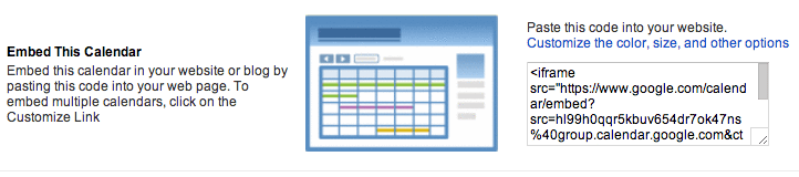 Consider embedding your Google Calendar directly into your website as an an easy way to publish homework, communicate deadlines, and keep students and parents up to date about your class. If you use Google Sites for your class home page, then you can easily embed a calendar by going to Insert → Calendar. However, even without a Google Site, you can use an embed code to post it. By clicking on “Calendar Details” (visible when you click the down arrow next to your calendar), you can scroll down, copy the “embed code,” and then paste it directly onto your website. Google Calendar will even let you personalize your calendar by customizing the color and shape.